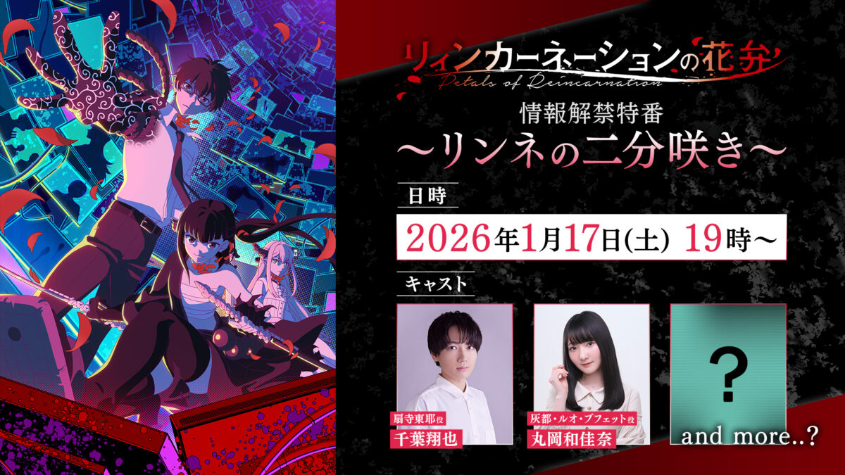 8月4日の情報解禁からはや5ヶ月…ということで、東耶役・ 千葉翔也さんと灰都役・ 丸岡和佳奈さんによる情報解禁特番〜リンネの二分咲き〜が配信決定いたしました!