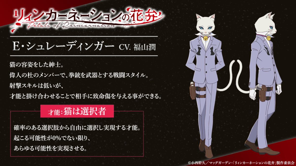 【猫の日】E・シュレーディンガー キャラクタービジュアル&キャスト解禁! 2026.02.22 E・シュレーディンガーのビジュアル&キャスト情報を解禁! E・シュレーディンガー役を、福山潤が担当することが決定しました! 詳細はこちらをチェック!